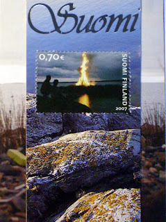 Laivakoira Ykä yllätti aivan ihanalla kirjeellä! Paljon ihania korttiaineita! Vanhaa tapettia, vanhoja nuotteja, postimerkkejä, tarroja, nauhaa, ihania korttipohjia ... Pelkästään kuoresta jo tein tämän kortin: